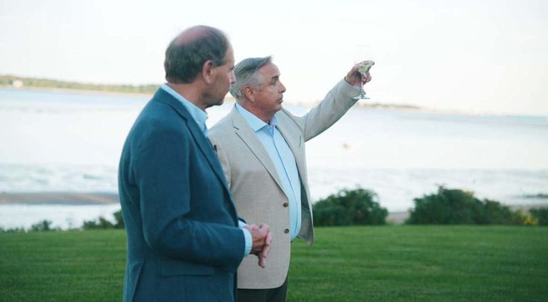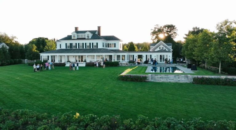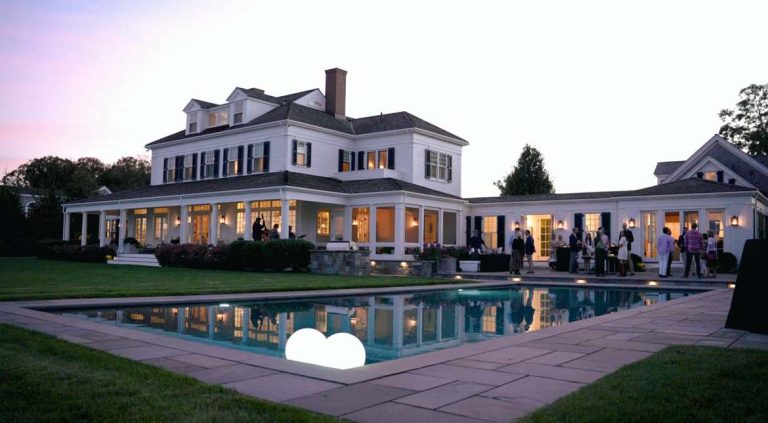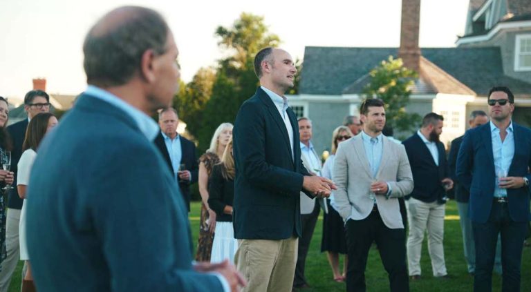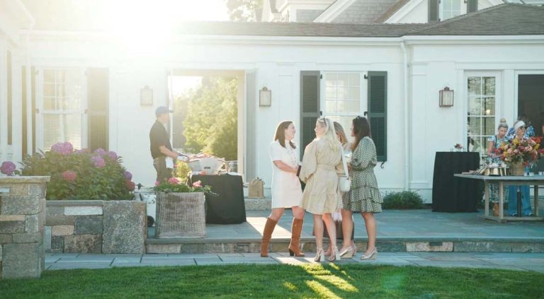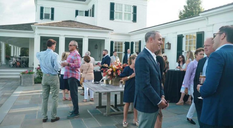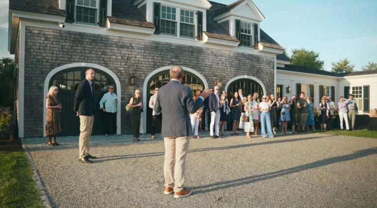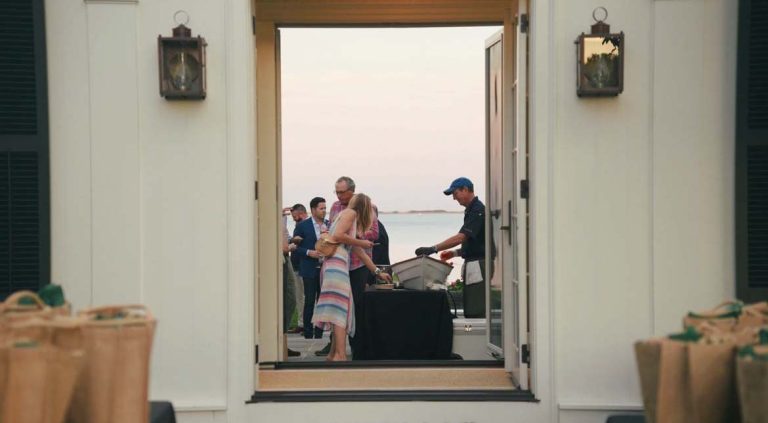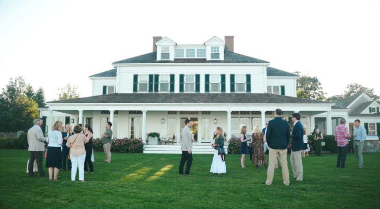 Afterwards, all enjoyed a warm reception on the rear terrace. With the sounds of Pat Gaulin’s jazz trio wafting through the air along with the crack of oysters being shucked and the clink of glasses toasting to a beautiful evening, the property once again played host to a celebratory event much the way it would have done in its heyday at the turn of the century. Mother Nature all but added her applause via a cotton candy colored sky above Duxbury Bay as the sun set.